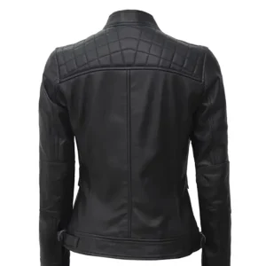 Women’s Quilted Cafe Racer Black Leather Jacket