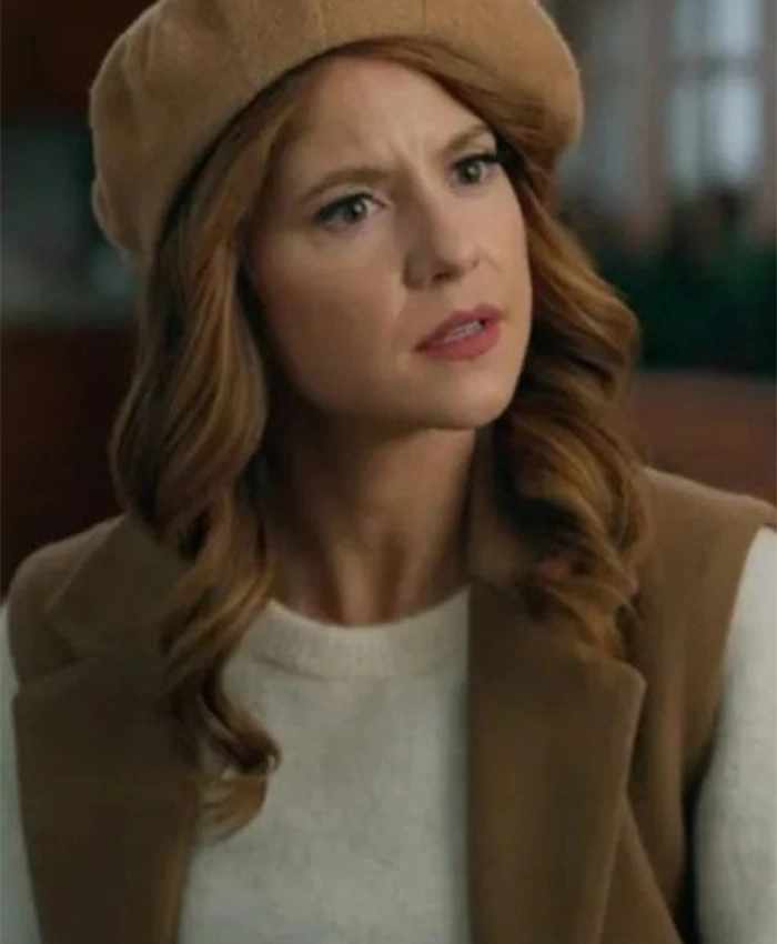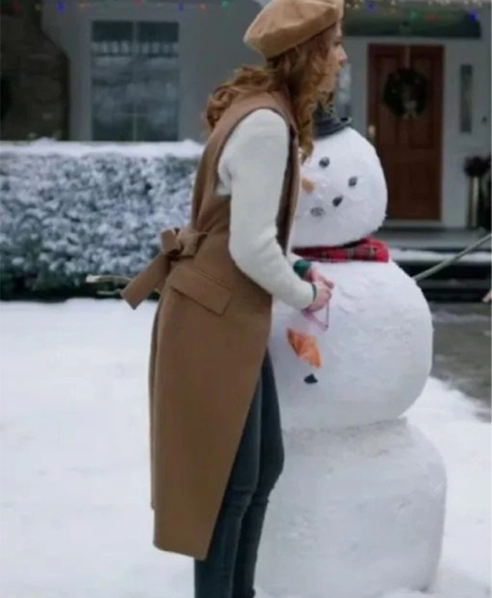 Film 12 Dares Of Christmas 2023 Brittany Underwood Brown Sleeveless Coat For Women