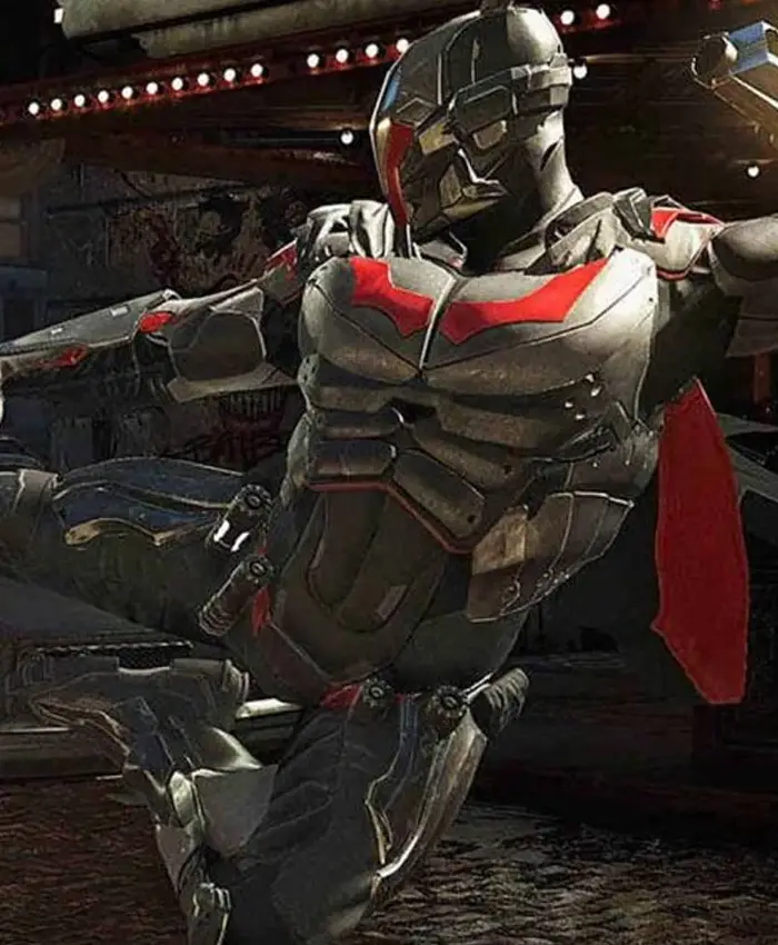 Batman Video Game Injustice 2 Red Logo Grey Leather Jacket