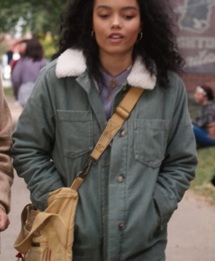 Whitney Peak Hocus Pocus 2 Becca White Fur Collar Green Cotton Jacket