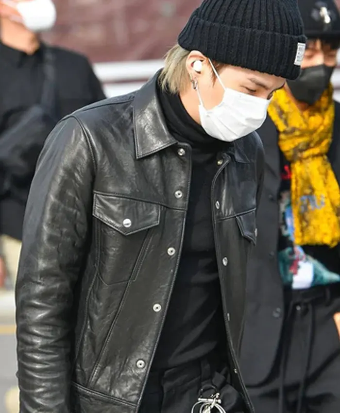 Min Yoon-Gi BTS Suga Black Leather Jacket For Sale