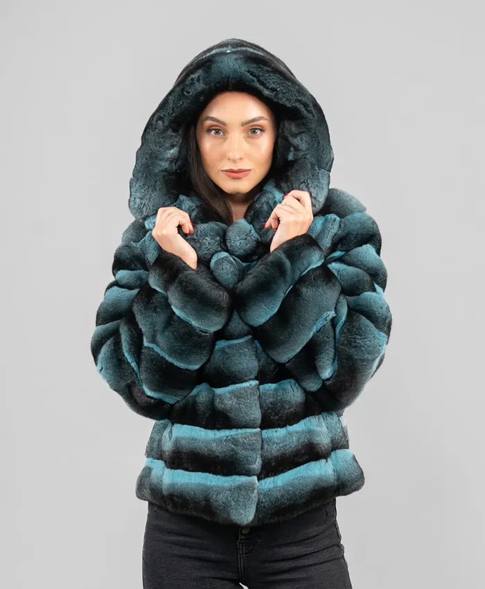 Chinchilla Blue And Black Hooded Jacket