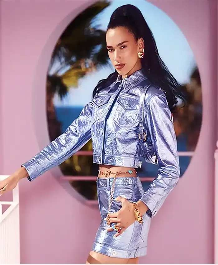 Dua Lipa Barbie Metallic Distressed Leather Jacket