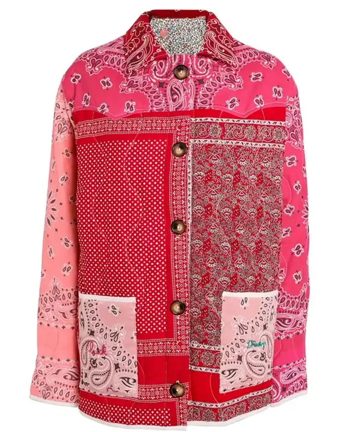 Emily In Paris Samuel Arnold Red Patchwork Printed Jacket