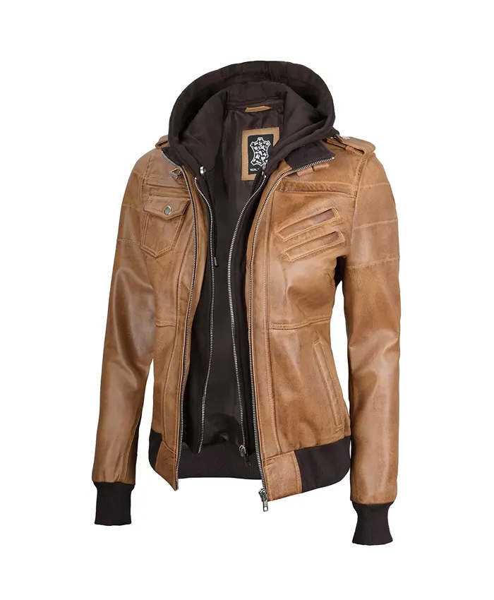 So, if you’ve ever wished for one piece that combines fashion, comfort, and dependability. It’s time to Shop Gary A Womens Camel Brown Hooded Leather Jacket and end the wardrobe panic for good.