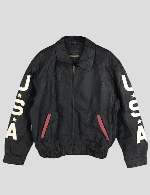 Independence Day Vintage USA Flag Black Real Leather Jacket