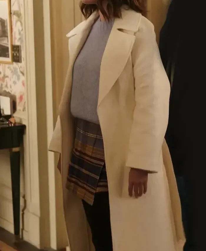 Selena Gomez Only Murders in the Building Mabel Mora S02 Ep06 Cream Off White Long Coat