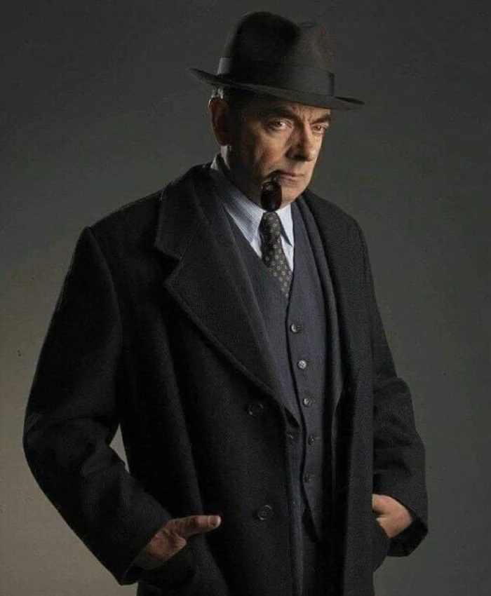 Rowan Atkinson wore a black trench coat in the Peaky Blinders, made by our skilled artisans from fine quality wool and cotton; the inside of the coat has a viscose lining.