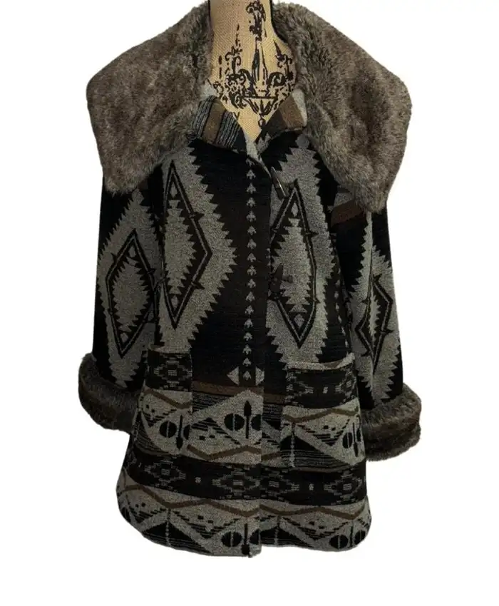 Penny Lane Aztec Print Fur Coat