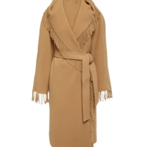 Wednesday S02 Billie Piper Brown Wool Fringe Coat