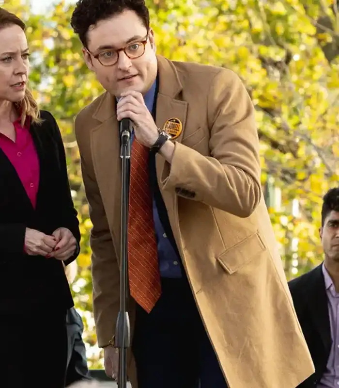 In the film Founders Day a national public holiday that commemorates the contributions of notable figures just as the Big Six. The Erik Bloomquist appears wearing this elegant brown coat. His stylish appearance in this piece captured the attention and hearts of the audience. This jacket is made from wool a material known for its natural warmth and comfort. Furthermore, wool is breathable and keeps your body insulated during colder. Weather while still permitting airflow to prevent overheating. Also, it’s soft, cozy and ideal for keeping a stylish yet snug feel throughout the day. Additionally, the inner viscose lining adds another layer of comfort. Viscose is smooth, lightweight and soft against the skin and making it easy to wear the jacket for long hours. It also helps the jacket maintain its shape and gives it a better overall fit.