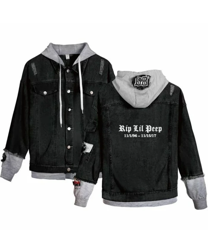 Lil Peep Rip Black Gray Denim Jacket