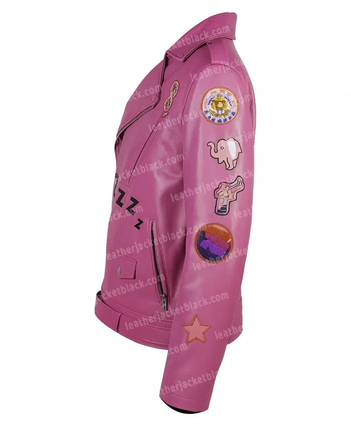 Nicolas Cage comes up with the cozy and funky Nicolas Cage Film The Unbearable Weight of Massive Talent Nick Pink Biker Real and PU Leather Jacket With Patches. It is an excellent jacket with some great design details. It is made up of Real and PU Leather. Multiple Pockets are available for the wearer’s convenience. It has full-length sleeves, Belted Style hemline. The jacket has a notch lapel style collar, YKK Zipper cuffs, and Asymmetrical Zipper closure for more amazing vibes. The funky jacket is available at the famous online shopping store LJB with amazing discounted offers.